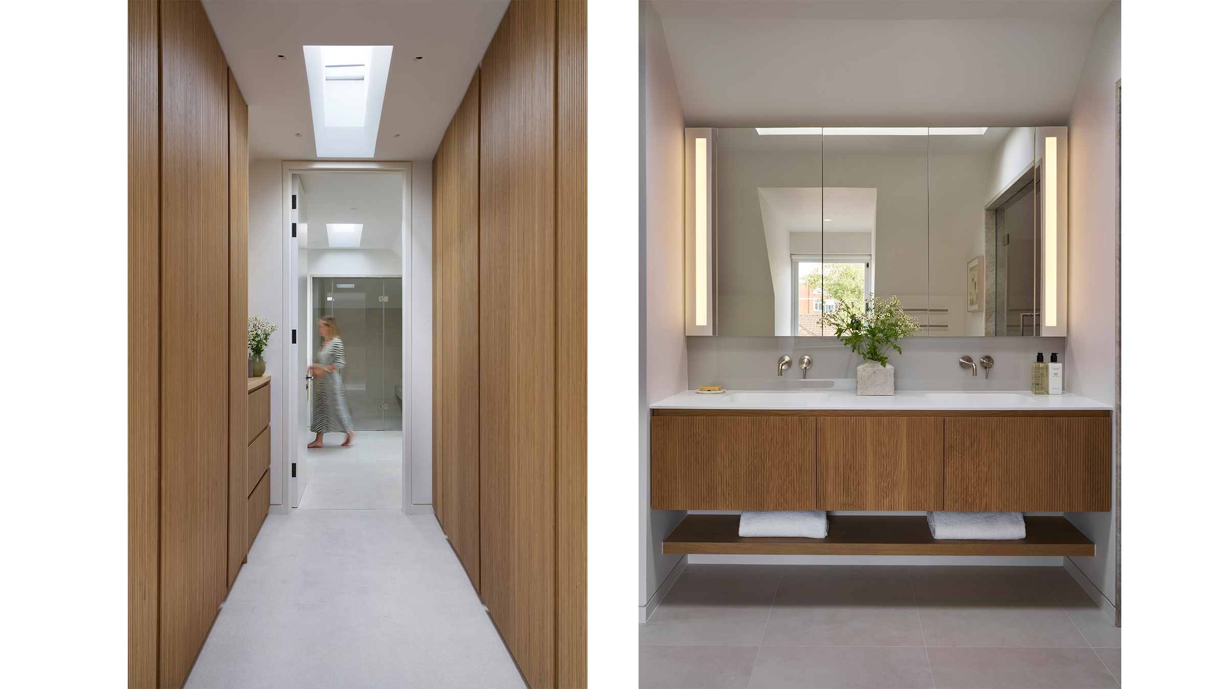The solution was ambitious. We stripped the structure back to its foundations retaining only the ground-floor exterior walls. From there we subtly extended the footprint at the side to create an enlarged living room. On the ground floor, an entrance lobby was introduced to ease circulation, while an entirely new second floor was built into the roofscape to create a master suite.